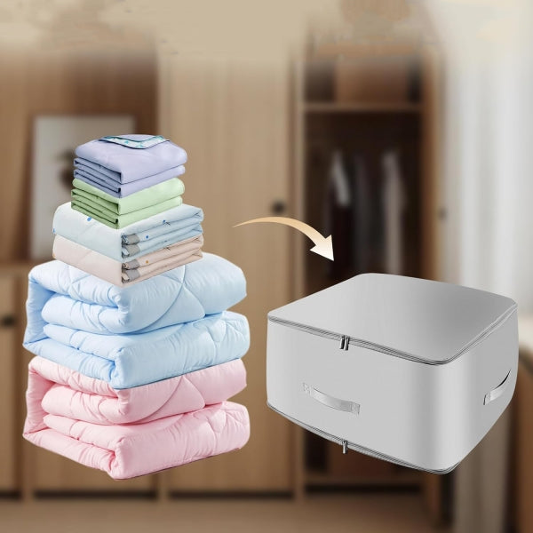 Saco Organizador de Armazenamento – Ideal para Roupa, Edredões e CobertoresMaximize o espaço no seu roupeiro e mantenha os seus itens protegidos com este saco organizador de alta capacidade. Ideal para guardar edredões, cobertores, roupa de cama e peças sazonais, este organizador é a solução perfeita para manter a sua casa mais arrumada e funcional.Características Principais:Grande capacidade:Perfeito para guardar edredões, cobertores, roupas de inverno e muito mais.Material resistente e respirável:Protege os tecidos contra poeira, humidade e odores.Fecho duplo de alta qualidade:Mantém os itens protegidos e facilita o acesso.Alças reforçadas:Permite transportar e movimentar com facilidade.Design dobrável:Pode ser guardado sem ocupar espaço quando não estiver em uso.Saco de armazenar 3 em 1👉🏼3 tamanhos em 1👉🏼Alças de apoio👉🏼Abertura p ventilação👉🏼Altura 0,60cm👉🏼Largura 0,60 cm👉🏼Profundidade 0,45